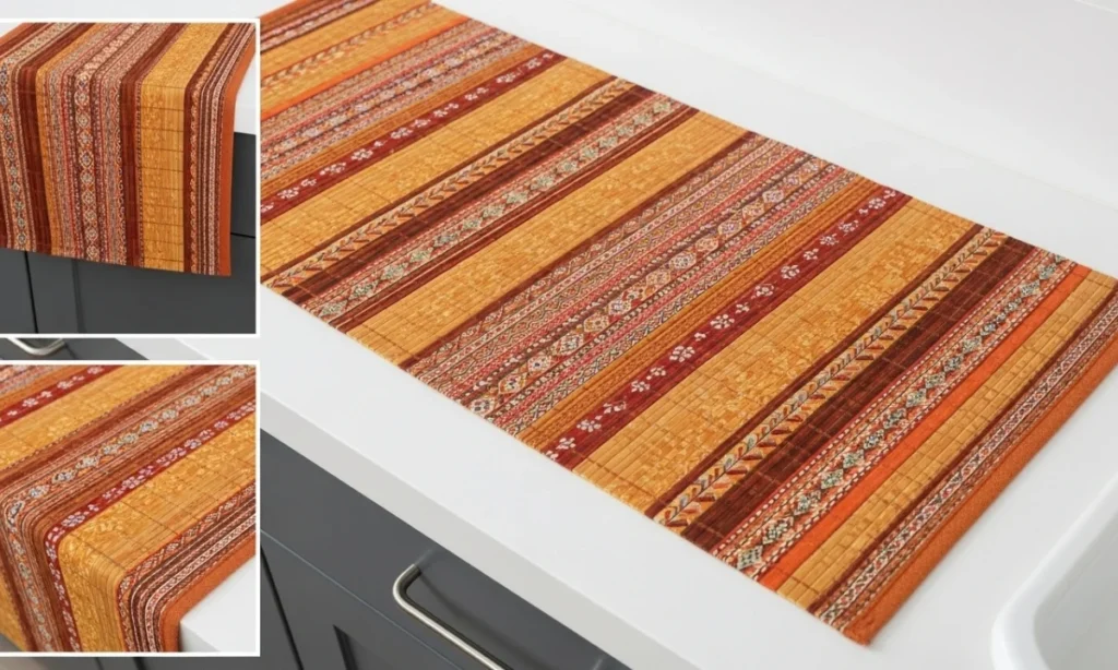 Show off your style with a hand-made runner. These kitchen runners are good since you can turn them over and wash them. They’re great for busy spots. They mix fun style with being easy to clean, making your kitchen bright.