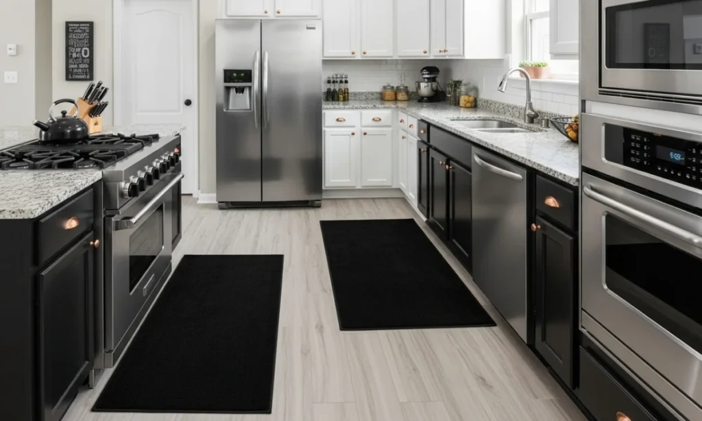 8. Using Black Rugs in a Modern Kitchen