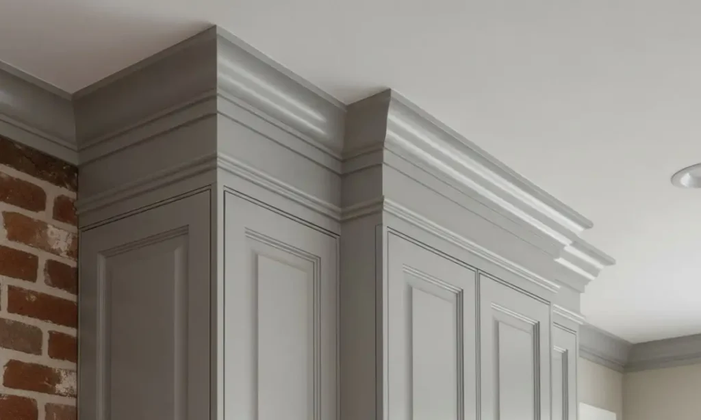 Careful attention to architectural details like crown molding can elevate a kitchen’s entire appearance. A smooth, durable enamel finish ensures these features seamlessly integrate with the cabinetry for a cohesive and polished look.