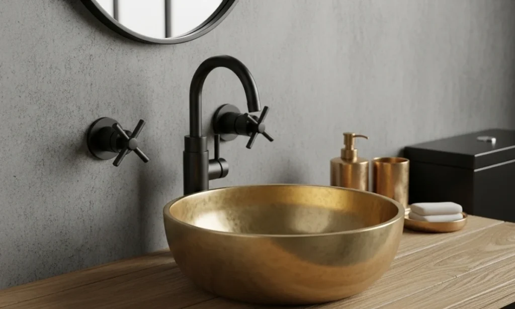 5. Contrasting Black Taps with Brass or Copper Sinks