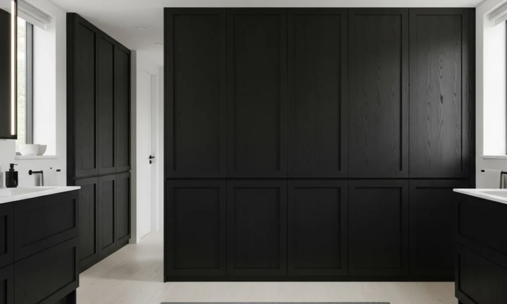 3. Floor-to-Ceiling Black Cabinets for Dramatic Storage