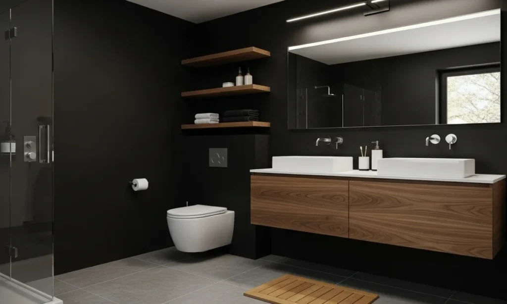 Choosing to have a bathroom in black is a bold statement which certainly contributes to the overall style and atmosphere of the area. A bathroom in black is more than just a color, as it provides a personal, luxurious, and deeply relaxing experience. The secret to achieving this atmosphere is achieving the right balance of dark tones with warm materials and textures.