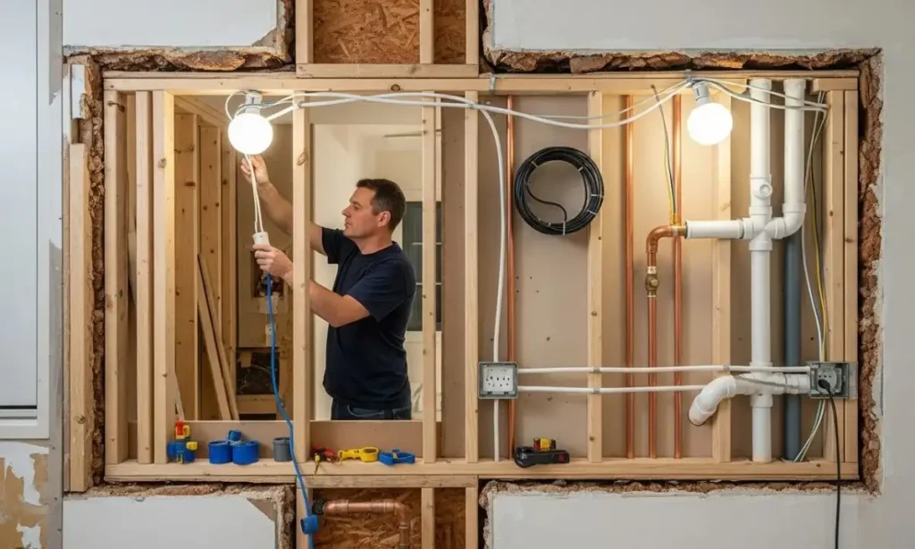 Step 2: Electrical and Plumbing Updates – You need to run new electrical lines for outlets and lights, as well as new plumbing lines. Never risk your safety and always get help from professionals for anything major and electrical/plumbing that cannot be undone easily.