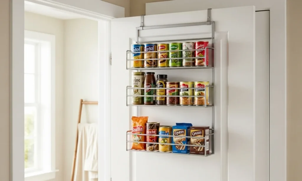 Change the back of the pantry or closet doors with these diy kitchen storage ideas into bonus storage space. Over-the-door racks instantly add shelving for canned goods, spices, or snacks.