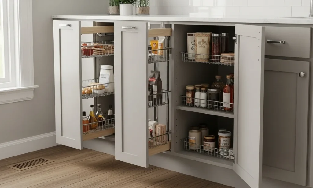 | Pull-Out Baskets | Converts deep cabinets into drawers |