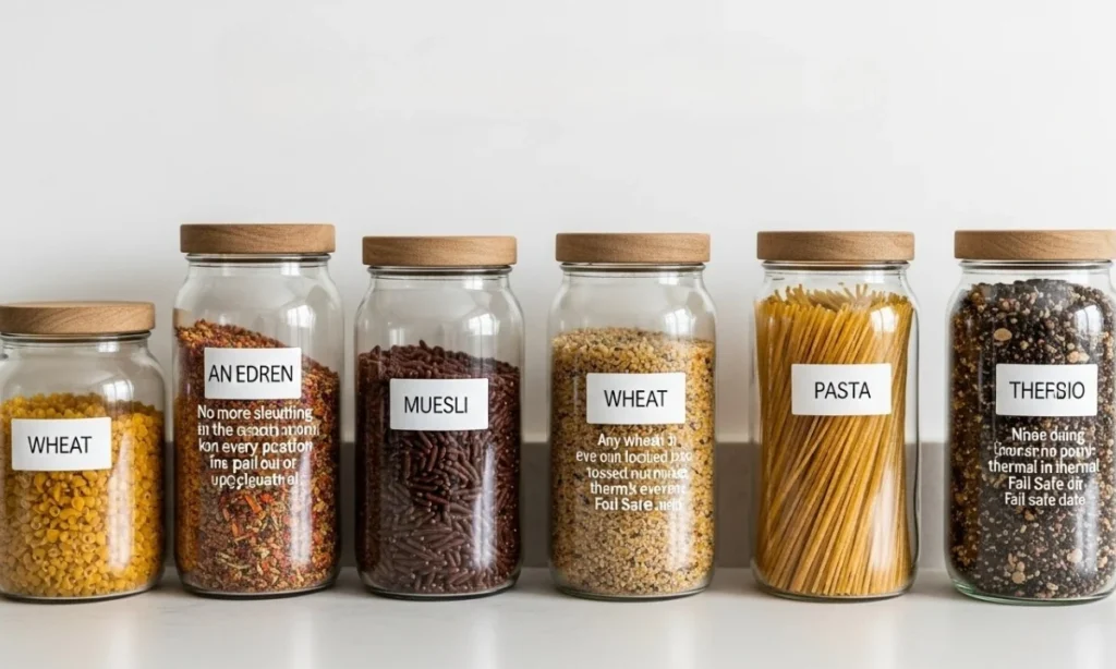 No more sleuthing in the pantry. Know the exact location of every pull out to upcycled jars. Any wheat, muesli, pasta, or even tossed nut mixes can all be added in. What’s even better is that each jar can be labeled in thermal and even have fail safe date labeling.