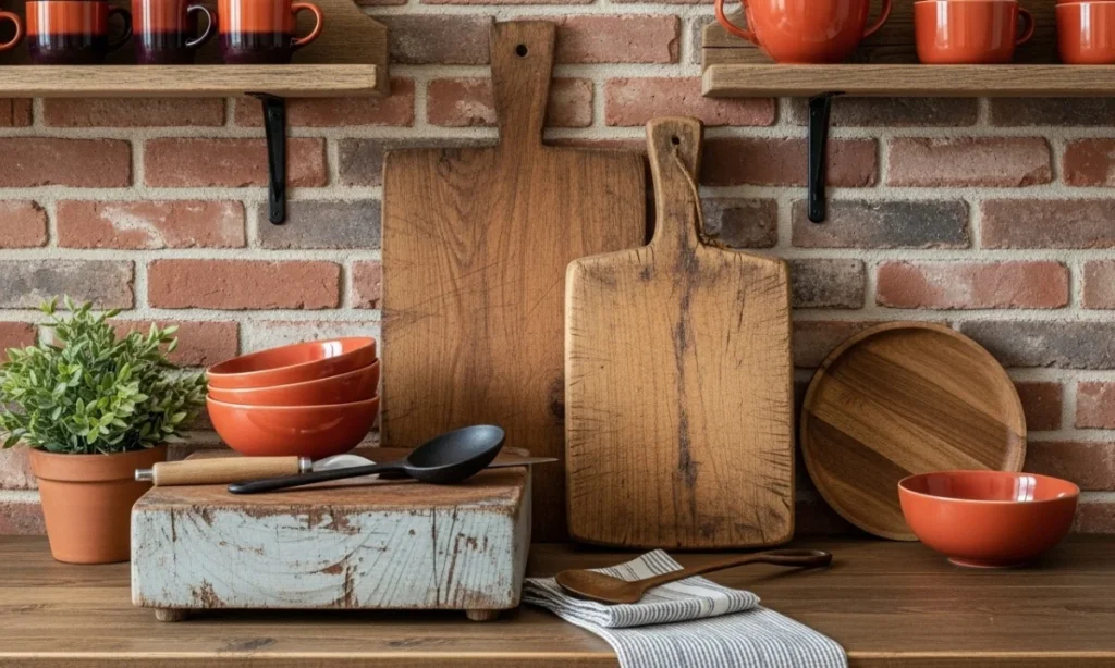 Use rustic decor for warmth and texture. Lean a wood chopping block with the patina of years against the backsplash, and a cast-iron spoon rest to enhance the rugged, natural feel.