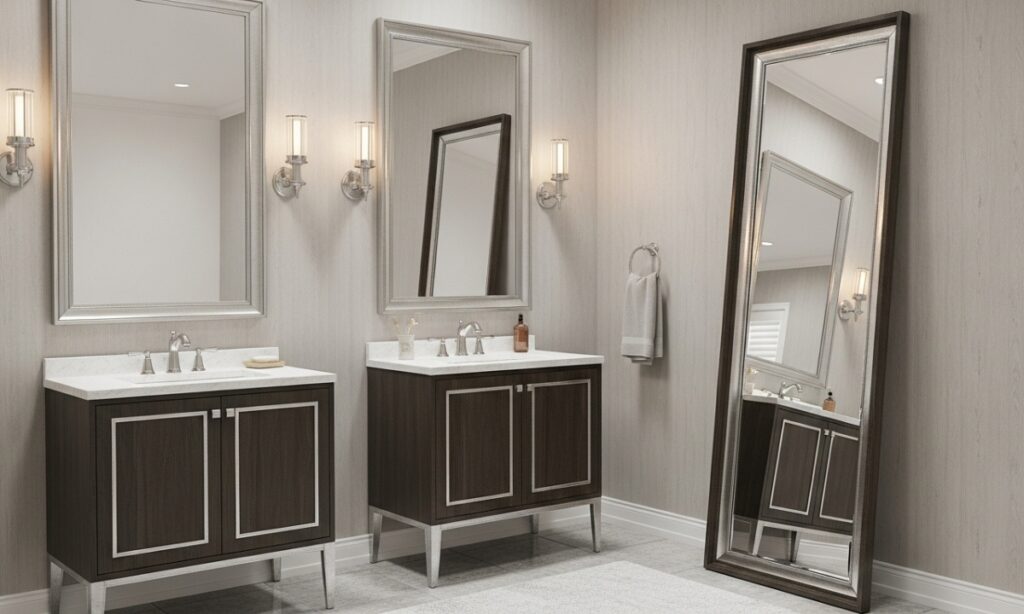 It also works as a light booster by capturing sunlight from the window and reflecting artificial light to brighten every corner. This results in a more open and air design. Beyond visuals, these ideas are based on longevity. Models with moisture-proof backing avoid desilvering, “black edge,” and frames of stainless steel or properly sealed wood ensures a humid space for ‘forever’ durability.