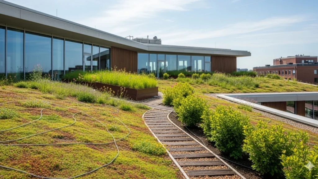 Plant-covered roofing systems provide air purification, water runoff management, and superior insulation while creating urban green spaces.