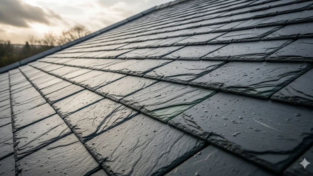 Premium natural stone roofing offering unmatched longevity and fire resistance, commonly seen on luxury homes with timeless appeal.